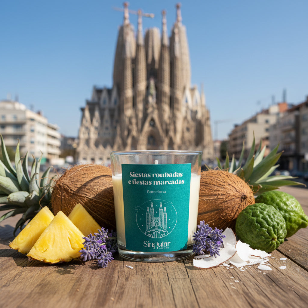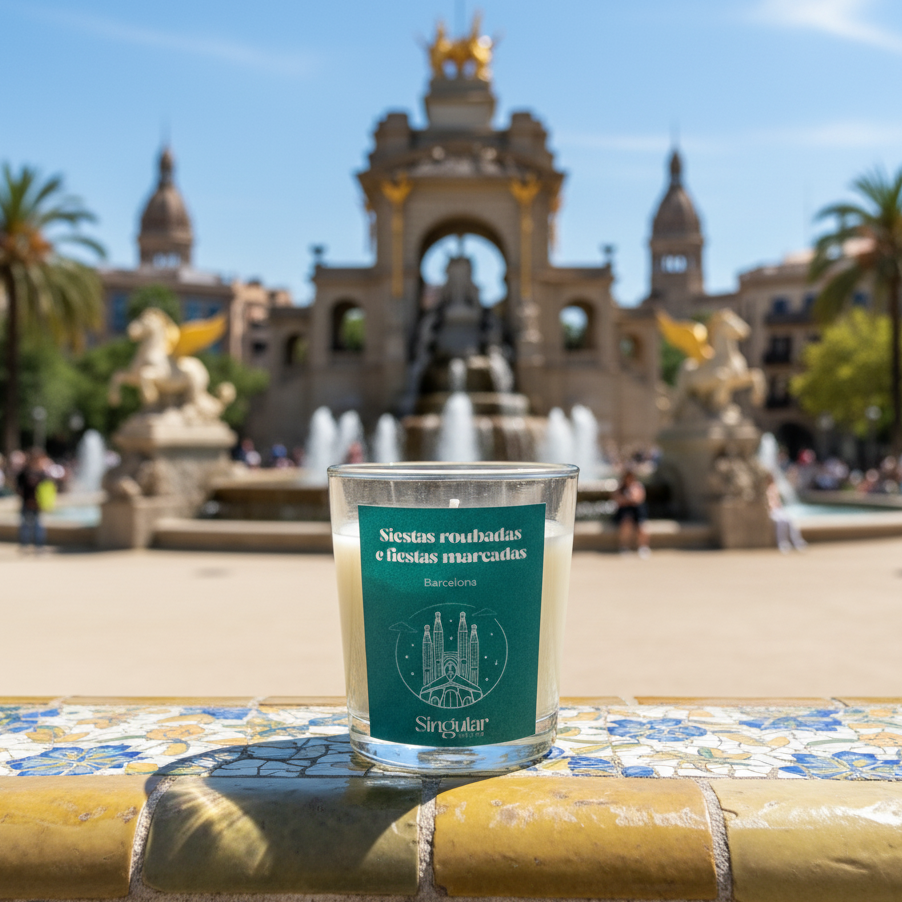 Quando o calor do dia transforma-se em brisa e a música começa a surgir pelas janelas. Acende-a antes do jantar, serve um copo de vinho e deixa que o riso dos amigos se misture com o aroma solar e leve de Barcelona.