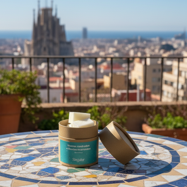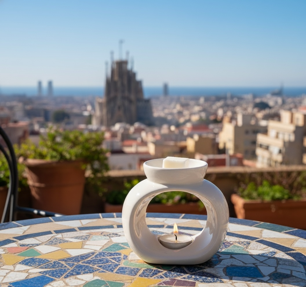 Quando o calor do dia transforma-se em brisa e a música começa a surgir pelas janelas. Acende-a antes do jantar, serve um copo de vinho e deixa que o riso dos amigos se misture com o aroma solar e leve de Barcelona.
